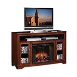 Add a regal, distinguished look to your living room with the addition of this electric fireplace and media console that comes in Empire Cherry and features a slightly distressed look.