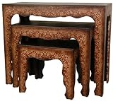 These are wider than most nested tables, wide enough for a hall table or sofa table. Beautifully crafted, with a distinctive decorative finish; an elegant European old world design printed onto fine quality, textured faux leather vinyl. Use the top table as a permanent lamp table, and the two underneath for occasions when friends or family stop by and extra table tops are convenient for snacks and drinks. Browse our entire collection of beautiful, richly colorful European design decorative furniture and decor. Orders ship next business day, professionally packed, fully insured from our Massechussettes warehouse via Fed Ex, with expedited delivery available.